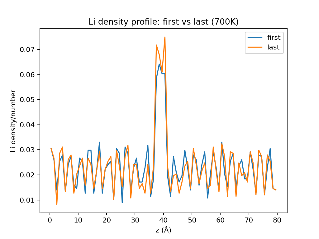 - 粒界位置 z0 ≈ 37.5 Å(Li密度ピークから推定)